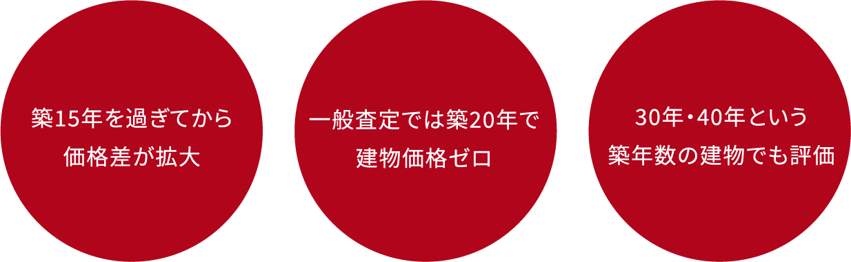 多くの不動産会社が行う査定では「評価ゼロ」になってしまう築20年以上のお住まいも、頑丈な構造やメンテナンス履歴、リフォーム状況をしっかり評価。