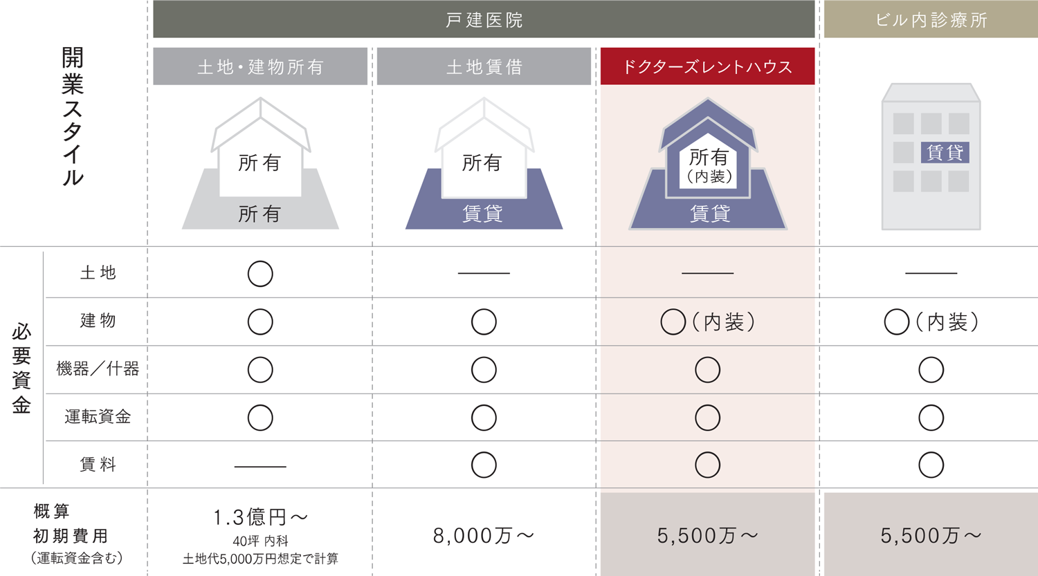 少ない初期投資での開業を実現するドクターズレントハウス※。