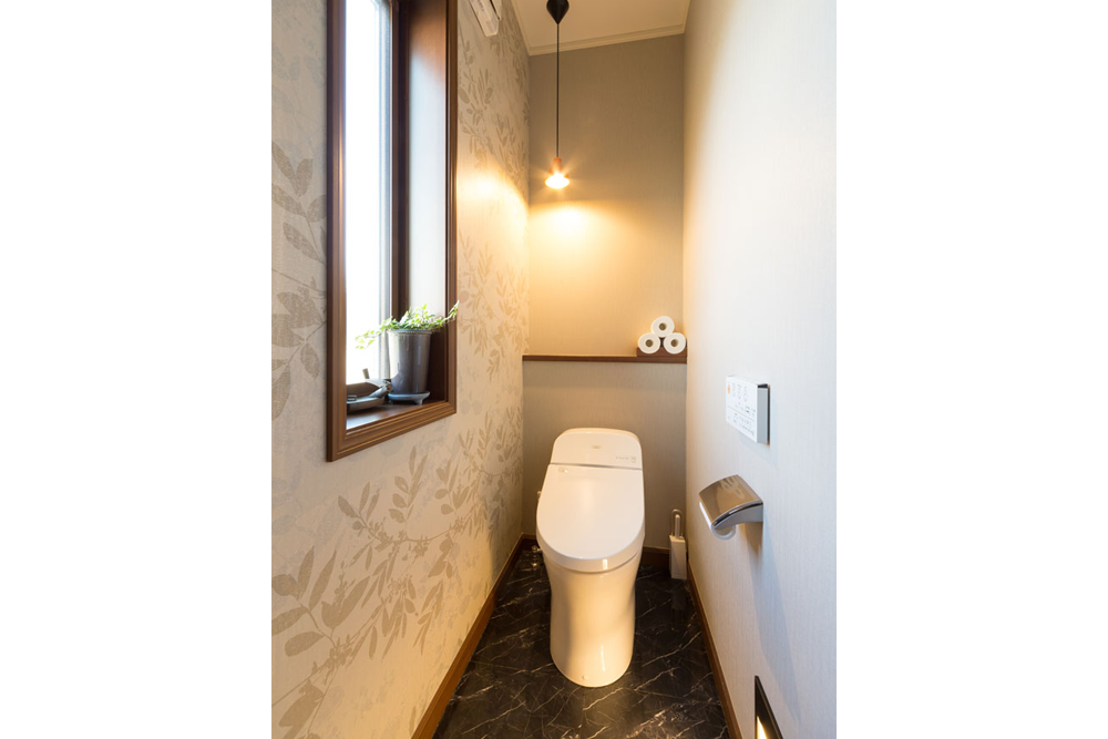 営業の高橋さんは、とても親身になって私たちの話を聞いて下さり、質問したこと以上の答えが返ってきて、不安な点もどんどん解消されていきました。設計士さん、インテリアコーディネーターさんの提案力も、いつも期待以上のものが上がってくるので打ち合わせをするのが楽しみでした。ただ希望を聞くだけではなくて、それはやめた方がいい、という指摘もしてくれましたので、安心してお任せすることができましたね。外観デザインのポイントである三連窓の窓枠を天然木にすることを提案してもらったおかげで格調高く、落ち着いた雰囲気になったので気に入っています。玄関前の庭スペースも展示場と同じように作ってもらったんですよ(笑)。