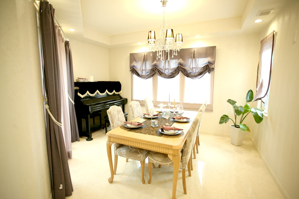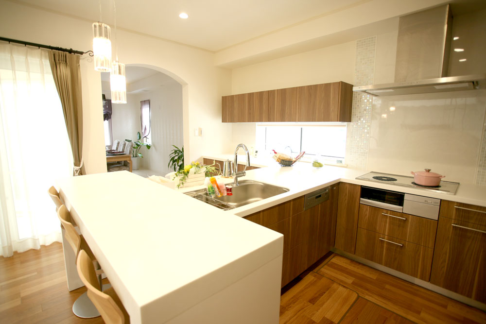フィルコートのフレンチスタイルは、高級感・重厚感の中にもフェミニンでやわらかなテイストが感じられ、私好みでした。設計士の林さんは話しやすく面白い方で、要望を伝えやすかったです。もっともこだわったのはキッチンです。T形のレイアウトはオリジナルのオーダーメイドで、とても気に入っています。インテリアは大須賀さんのセンスが光るコーディネートで素敵に仕上げていただきました。色使いや組み合わせのノウハウ、観葉植物の選び方など、アドバイスもしていただき、おかげで家の中全体がお気に入り空間です。そして何といっても、全館空調は快適の一言。家族全員、健やかに過ごしています。