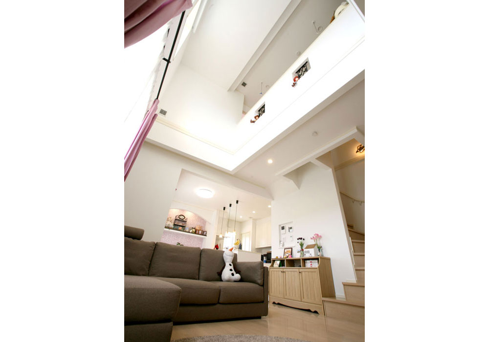 みんなで過ごせるリビングとそれぞれの個室、別の場所にいても一体感を感じられる開放的な吹き抜けのある間取り。庭ではガーデニングやピクニックを楽しむ…。そんな住まいを夢見ていた私たち家族全員の願いが形になった住まいで、毎日、快適に過ごしています。全館空調のおかげで空気が澄んでいてどこにいても心地よく、子どもものびのびと遊んでいます。小屋裏の隠れ家にこもる時間もぜいたくで気に入っています。家中、好きなもので満たされているので幸福感が感じられ、家にいる時間が長くなりました。