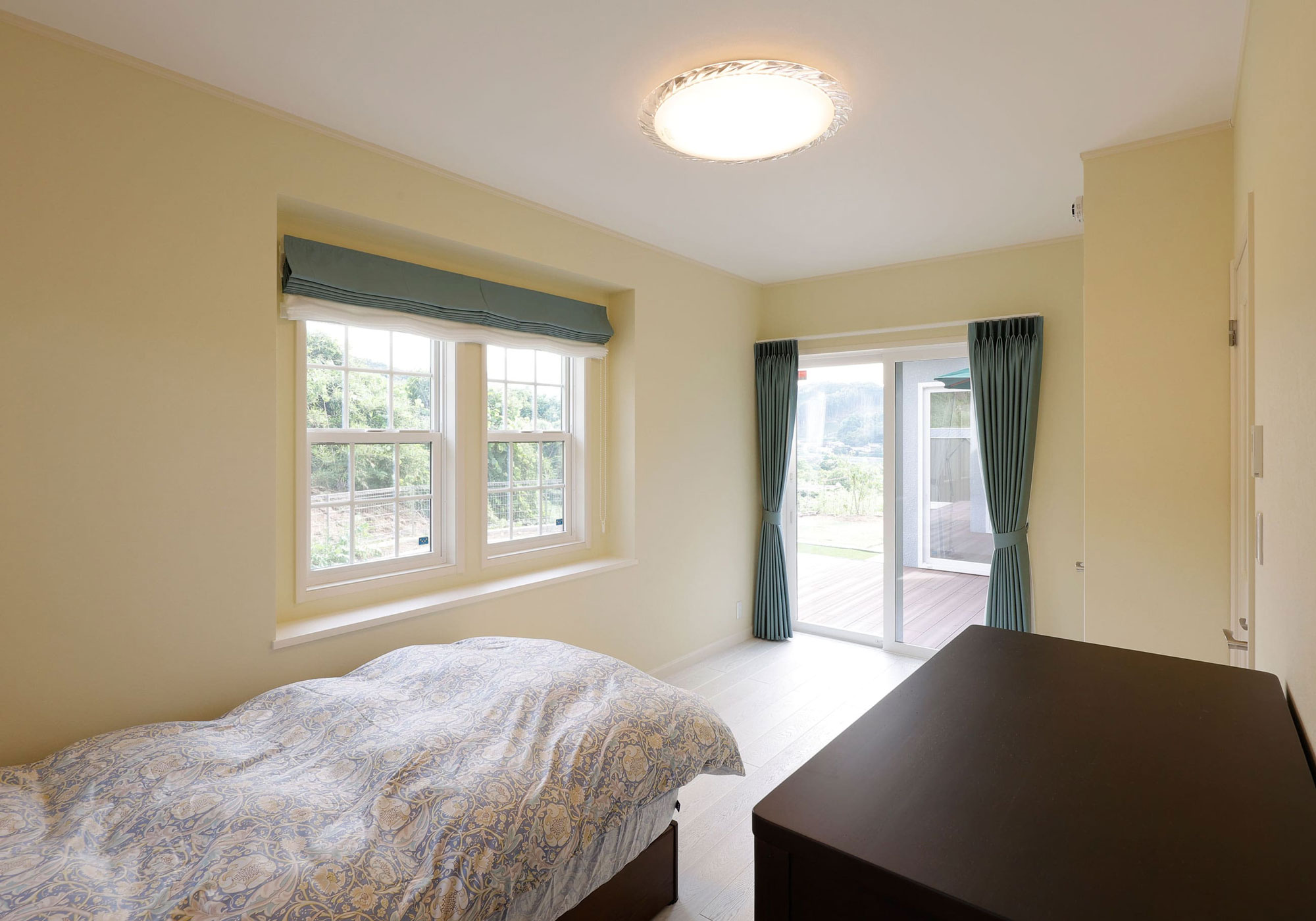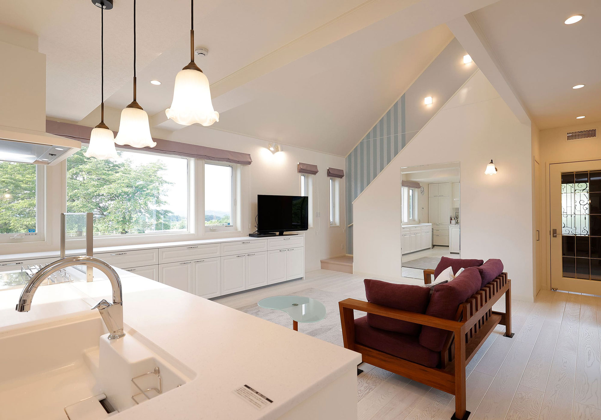 ゴルフの帰り、たまたま通った場所が本当に美しい場所で。妙義山、榛名山、赤城山が一望できる自然豊かなこの場所でいつか暮らしたいと思っていました。そう思い始めてかれこれ20年の時が経ち、ついにこの土地で夢を叶えることができました。設計の段階では、美しい風景をより楽しめるよう、絶妙な位置に窓を配置していただきました。夕暮れ時にこの窓から見る景色は本当に美しく、毎日同じ場所、同じ時間に見ても、前の日とは違った変化や季節の移り変わりを肌で感じることができます。