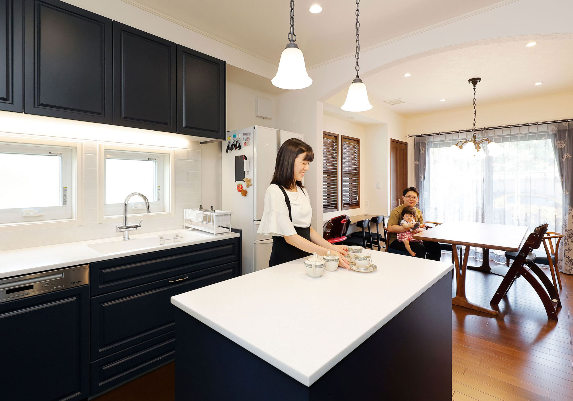 外観には割とこだわりました。夫がお庭は広い方がいいと言っていて、希望通りになりました。最近は活発になってきた長男が自転車を走らせて楽しんでます(笑)。私はキッチンが譲れないポイントで、将来的には子供と一緒にお料理したいので広くしてもらいました。最近は上の子がやりたいって言ってくれるようになってきて、一緒にできる日が来るのもそろそろかなって感じです。