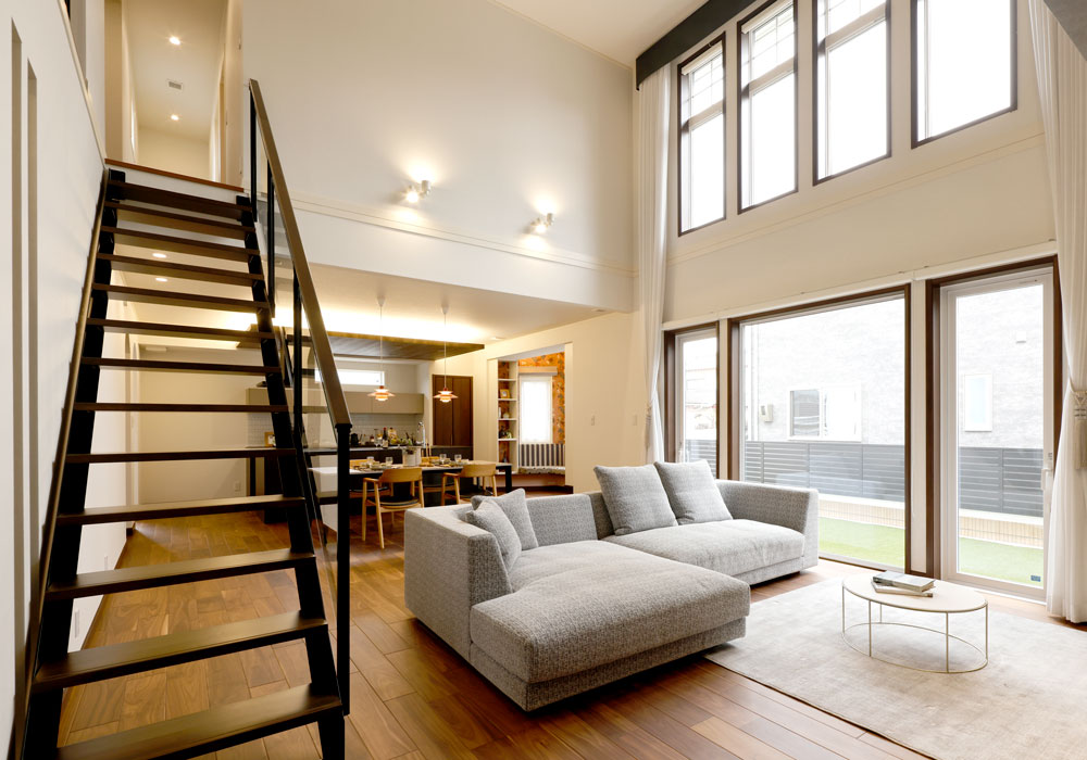 想像を超えるダイナミックな吹き抜けをつくっていただきとても感謝しています。玄関からリビングに抜けると、ものすごい開放感のある空間になっていて驚きました(笑)。