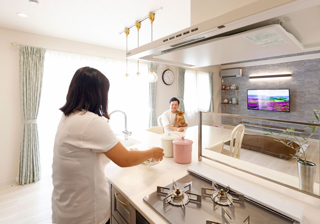 家の設計で特にこだわったのが、敷地を最大限利用した無駄のない空間と回遊動線でした。家の中をスムーズに移動できるようにしたかったので、ぐるっと回れる動線を意識しました。荷物の出し入れが楽にできる配置も工夫していて、家事の効率が良くなりました。それと、インテリアにも強いこだわりを持っていました。特にエレガントな空間を作りたいと思っていたので、金の取っ手や装飾を取り入れて、空間に華やかさを加えました。インテリアコーディネーターさんの助けを借りて、私たちの希望をうまく形にしてもらえたと思っています。リビングダイニングは明るく、寝室は少し暗めにして、カントリー調の落ち着いた雰囲気を作りました。こうして細部にまでこだわり抜いた結果、毎日家に帰るのが楽しみになる理想の空間が完成しました。