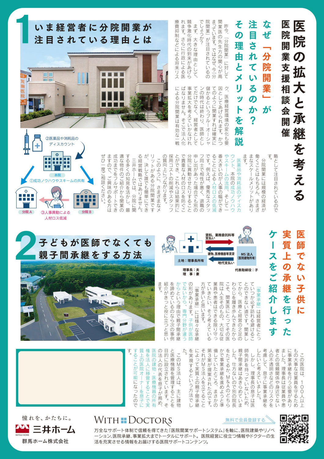 三井ホームが持つ医院開業のノウハウや事例を元に解決策を提示させていただきます。