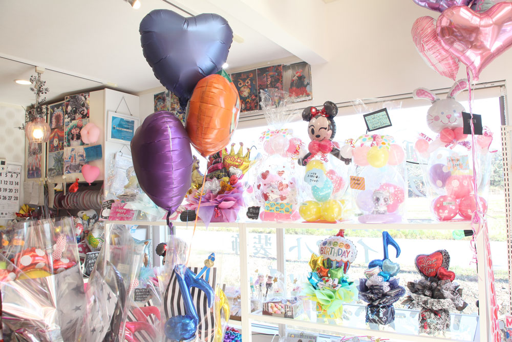 みんなの笑顔が見たいから、今日も私たちは膨らます。夢を、希望を、そしてバルーンを。 店内にはたくさんの風船が盛り沢山♪普通のお店では取り扱っていない大きな風船や、アレンジメントされた風船のギフトなど、とにかくたくさんの種類を展示しております!季節に合わせた風船や、イベントスタイルに合わせたバルーンギフトなど、誰にあげても喜ばれるちょっと変わった贈り物はいかがですか?