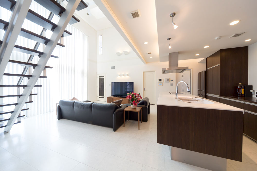 夫の通勤や将来の子どもの進学のことなどを考え、駅の近くに引っ越したいと考えておりました。数社に声をかけて土地探しから始めたところ、三井ホームさんが最適な土地を提案してくれたのです。以前、夫の仕事の関係でアメリカに住んでいたことがあり、その時の経験で、新築する時は広くて開放感があってモダンな家に住みたいと思っていました。家についても三井ホームさんは様々なバリエーションがあって提案力も高く、私たちの希望を叶えてくれそうでしたのでお願いしました。アイランドキッチンもアメリカのものを真似て、高さを少し高めに作っていただいたんですよ。全館空調という点も大きな魅力でした。