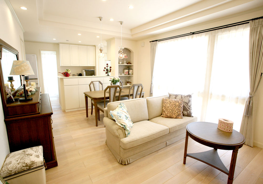 三井ホームさんの家に興味を持ったのは、2010年に発売された「シュシュ」シリーズを見たのがきっかけでした。展示場を見学したところ、かわいらしいデザインが一目で気に入りました。ほかのメーカーもいろいろ見ましたが、やっぱり三井ホームさんのデザインがダントツでした。特に、明るい色調の床材は三井ホームさんオリジナルで、ほかにはなかなかなかなかったのも決め手になりました。