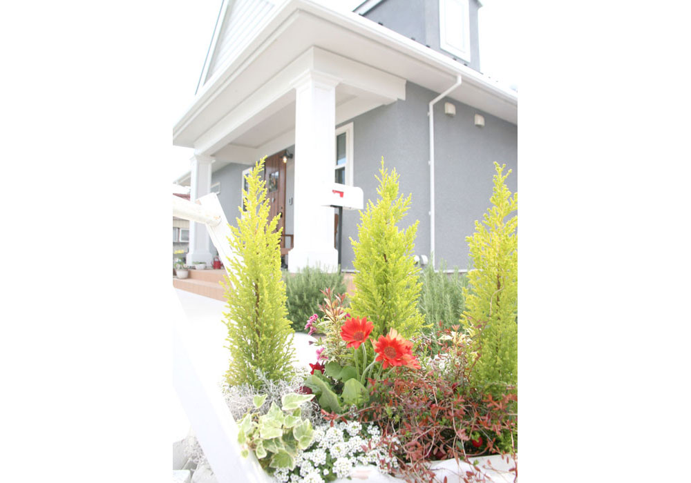 外から見える家の風景も意識して外観にもこだわったので、玄関まわりを飾って楽しんでいます。庭も広くとれたので、ガーデニングにも挑戦しました。花と緑に囲まれた我が家に、日々、満足しています。家に帰るたび、中も外も素敵で、幸福感が高まります。