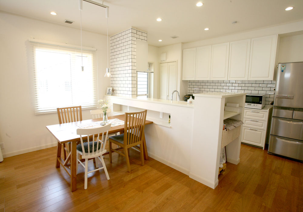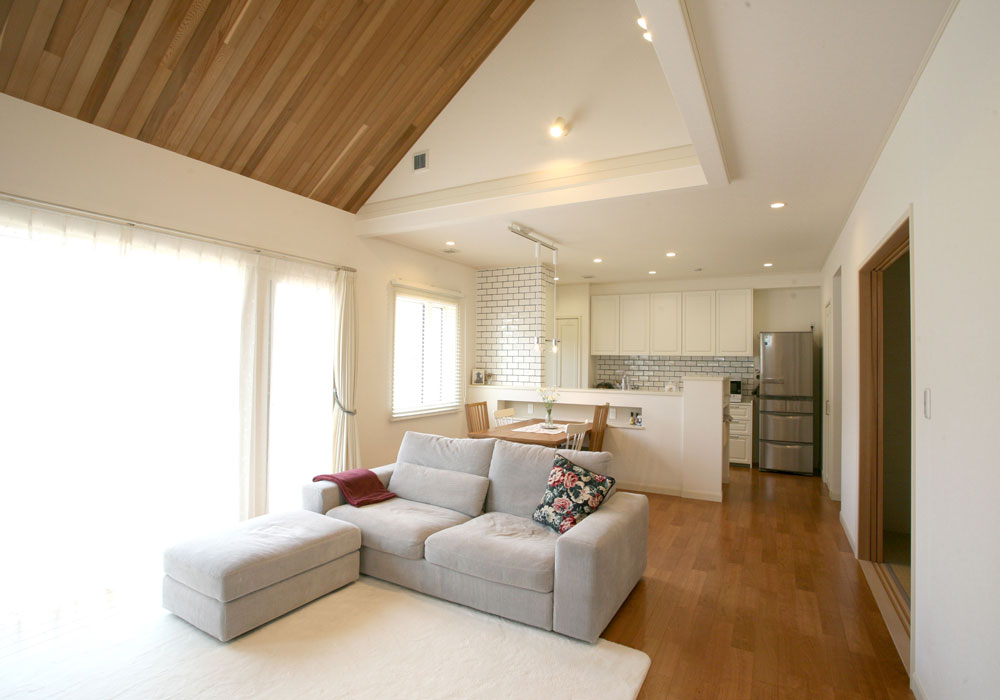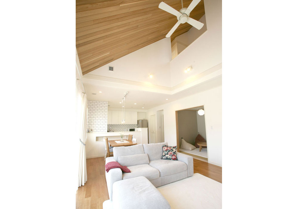 営業の川岸さんはじめ、スタッフの方々は皆さんとても誠実で信頼できると感じました。設計の鈴木さんは、小屋裏2階建てや広いLDK、1階はすべての部屋を回遊できる使い勝手の良い動線など、私たちの要望をすべて叶えるプランを提案してくださいました。出てきたプランがあまりにも希望通りで衝撃を受けたくらいです。開放感のある勾配天井などやキッチンカウンターに設けた収納棚、東側の壁に設けた壁から朝日が差し込む明るいリビング、小屋裏の手すりからリビングを見下ろせる工夫など、素敵な提案をたくさんしてくださいました。