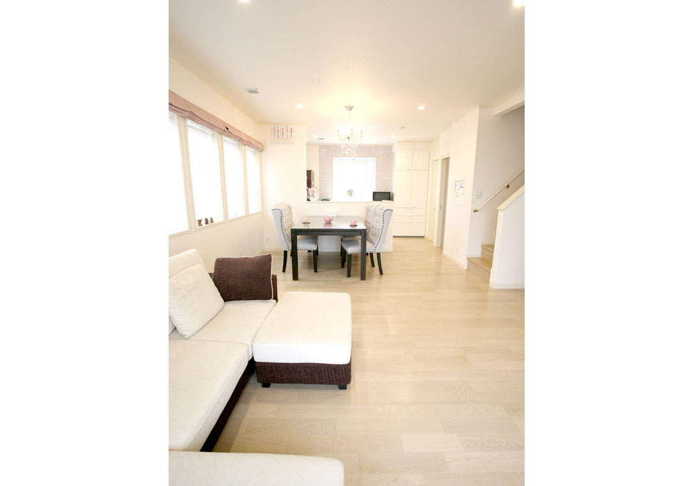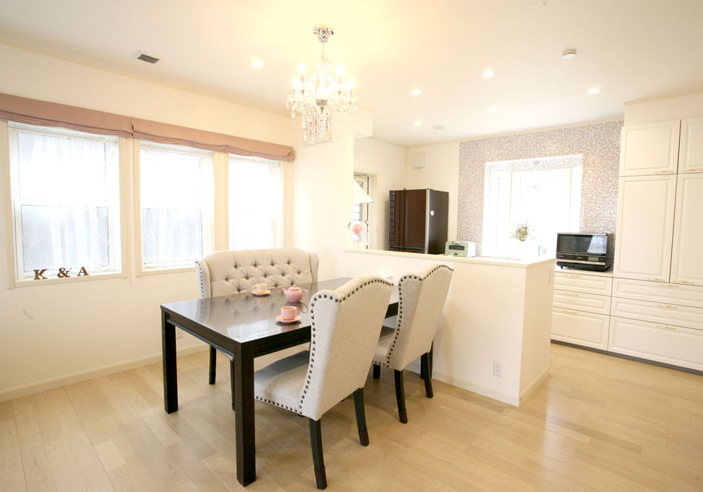 インテリアコーディネーターの新井さんも、私たちの好み通りのものを選んでくださり、とてもスムーズに決めていくことができました。キッチンや洗面台のモザイクタイルやトイレのクロス、階段の星形のランプなど、細かなところまでとても気に入っています。
