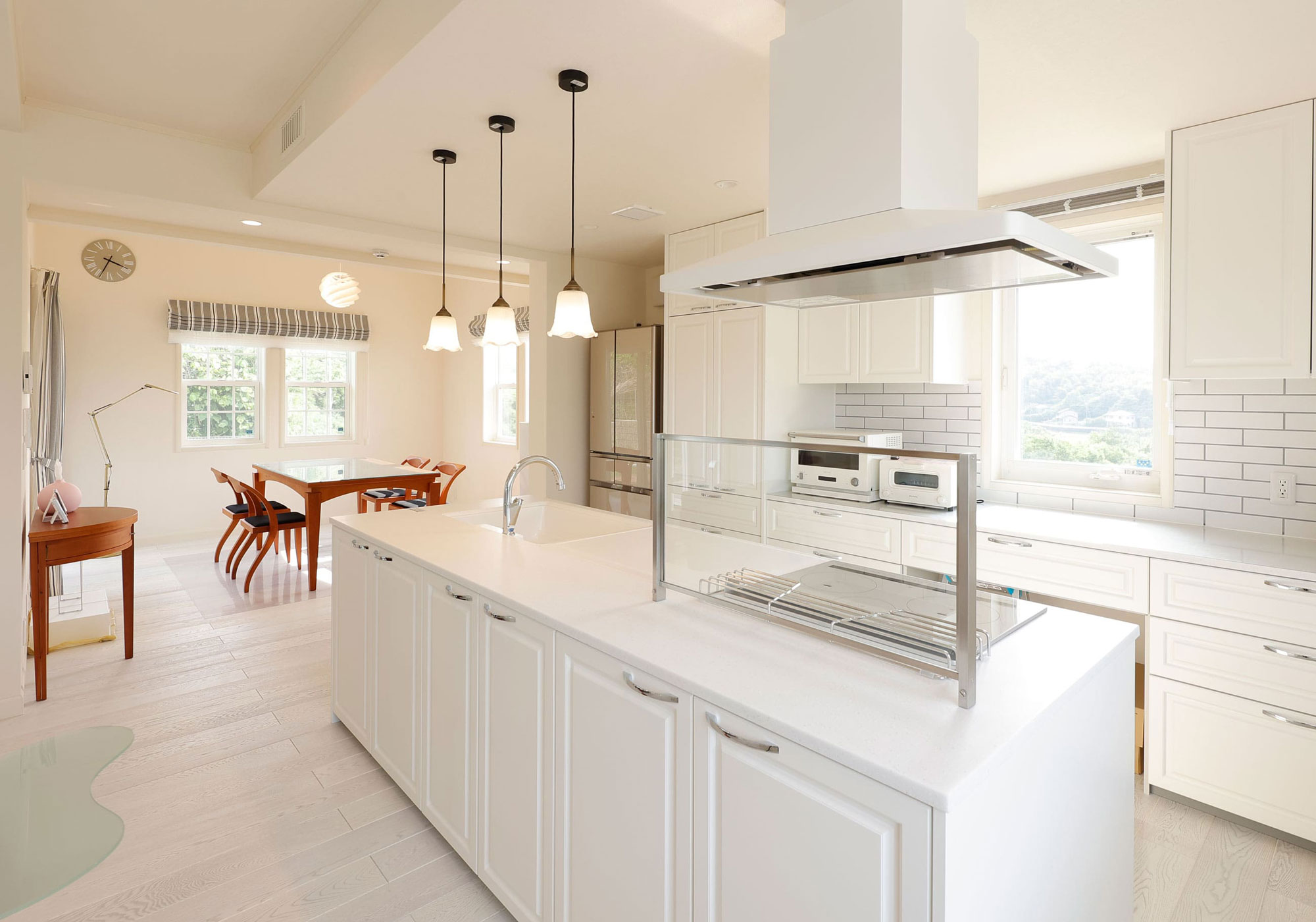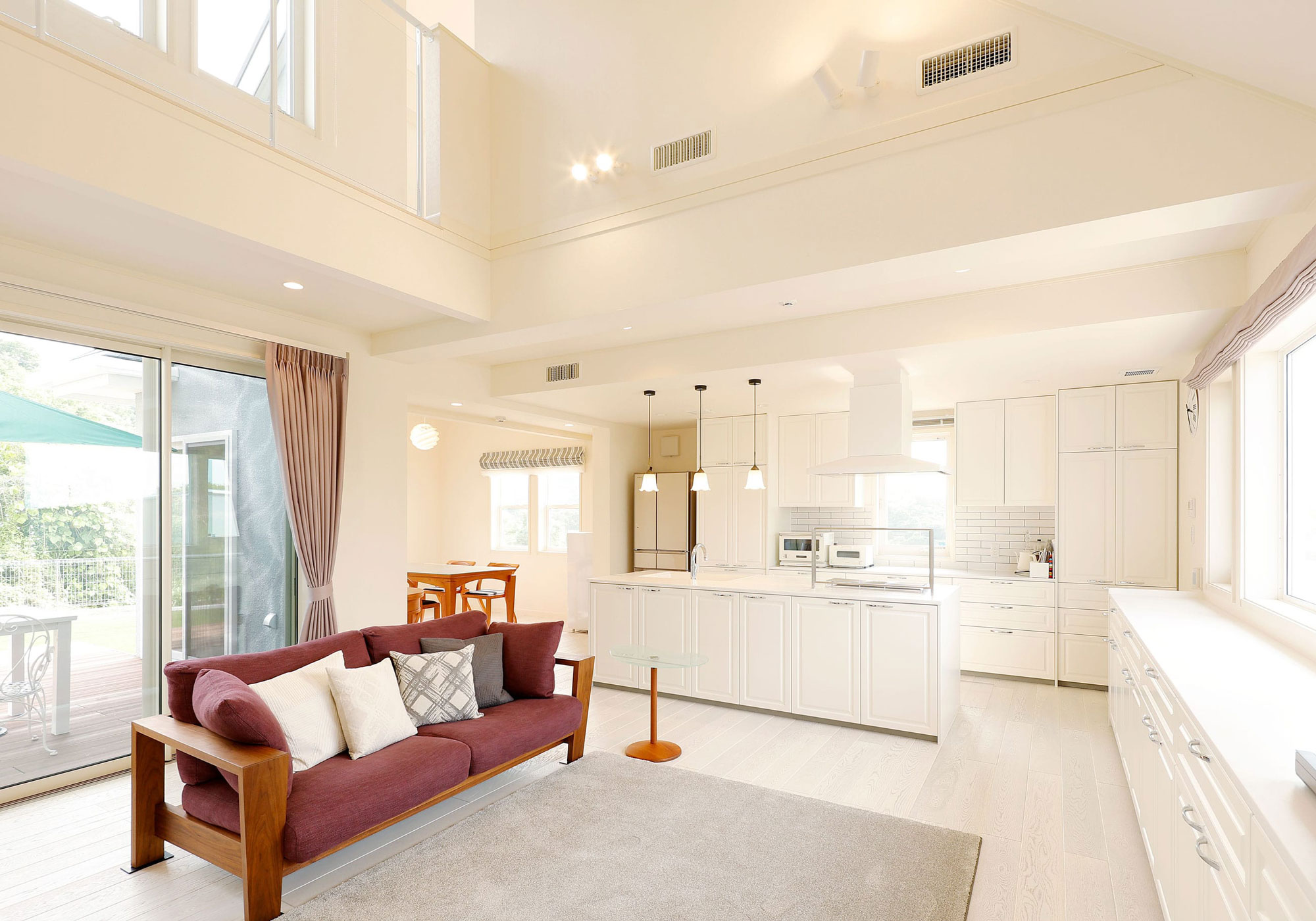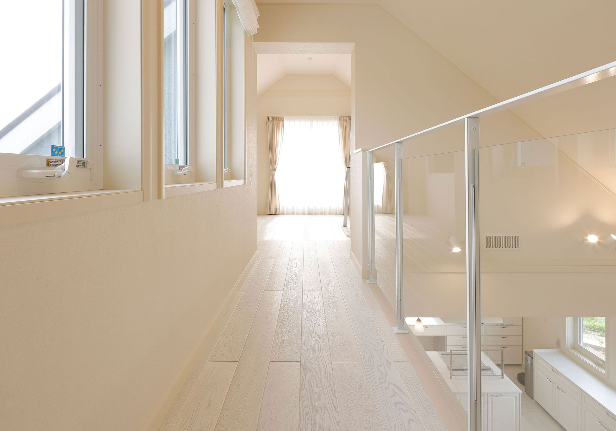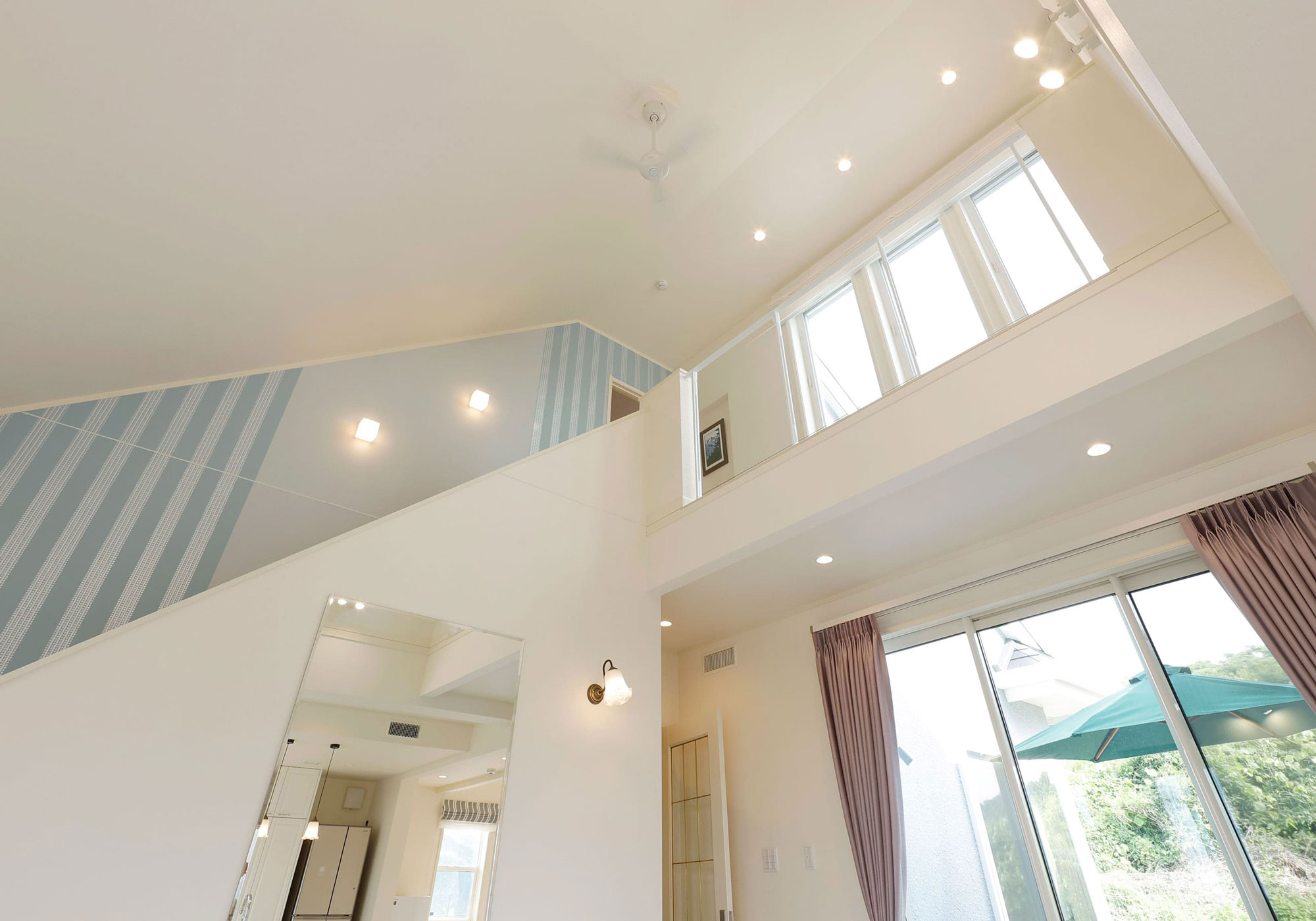 パブリックスペースは明るくしたかったので、床、壁、天井、全てを白にしました。また、ダイニングのカーテンには最後までこだわり、素敵な色のストライプ柄を勧めていただきました。思いがけず嬉しかったことは、階段壁の色です。当初はパブリックスペースと合わせて白にしたかったのですが、階段スペースの壁には変化があった方が良いと、インテリアコーディネーターの方に助言していただきました。さらに、こだわったカーテンの色と似た色にできると提案をいただき、とても満足のいく仕上がりになりました。最初から最後まで、丁寧なヒアリングとサポートをしていただき、三井ホームを選んで良かったなと思いました。