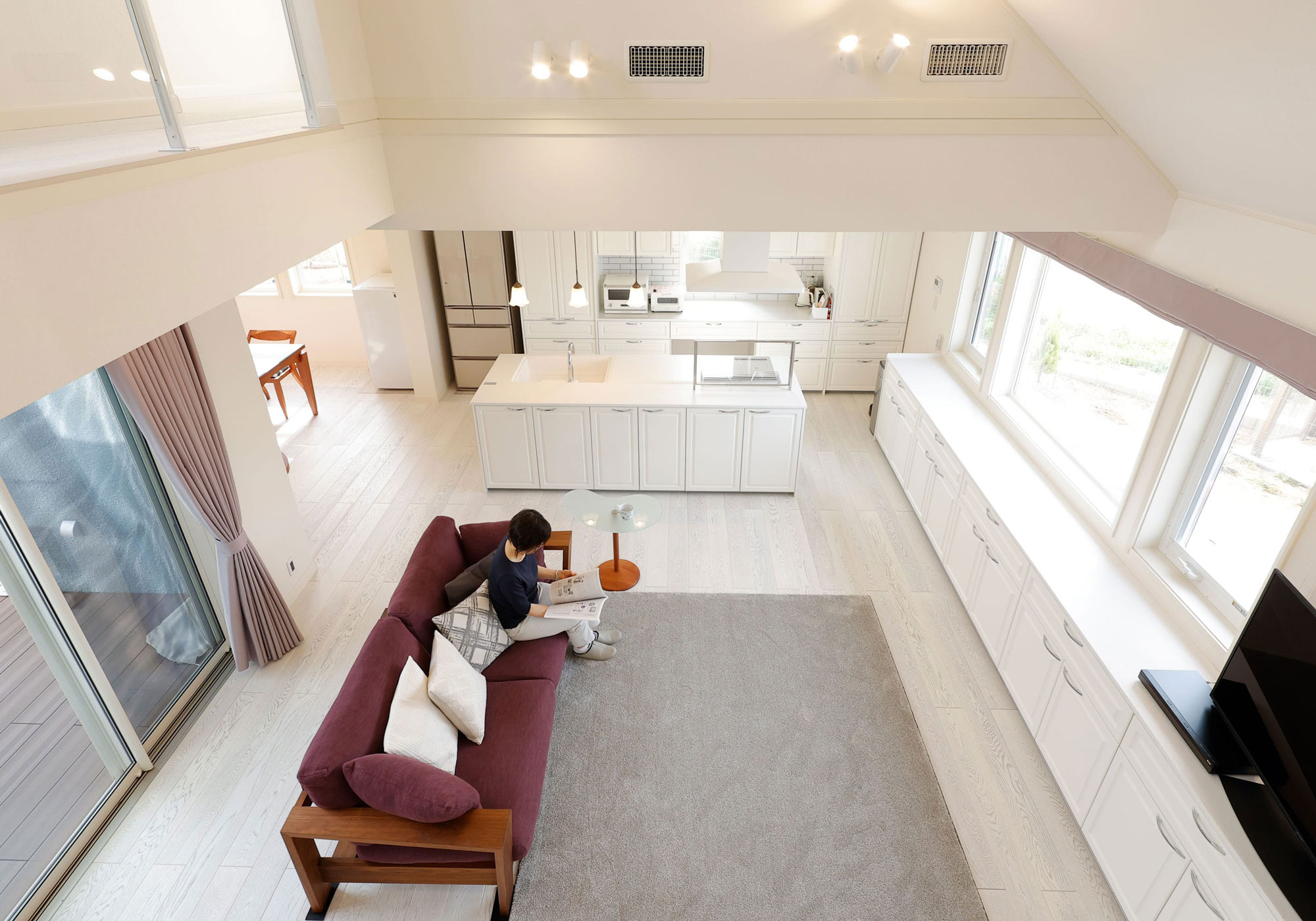 ゴルフの帰り、たまたま通った場所が本当に美しい場所で。妙義山、榛名山、赤城山が一望できる自然豊かなこの場所でいつか暮らしたいと思っていました。そう思い始めてかれこれ20年の時が経ち、ついにこの土地で夢を叶えることができました。設計の段階では、美しい風景をより楽しめるよう、絶妙な位置に窓を配置していただきました。夕暮れ時にこの窓から見る景色は本当に美しく、毎日同じ場所、同じ時間に見ても、前の日とは違った変化や季節の移り変わりを肌で感じることができます。