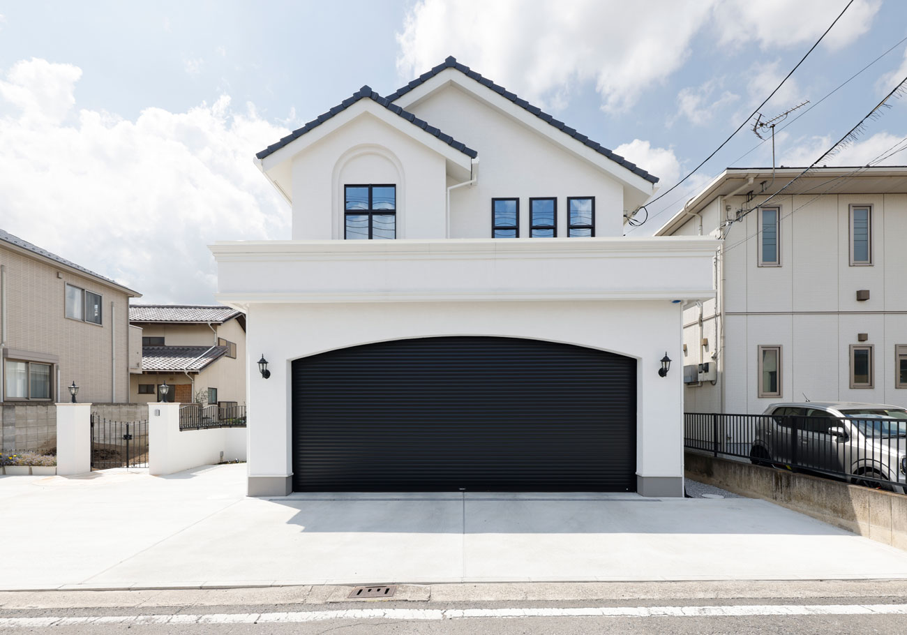 アーチのデザインが映えるビルトインガレージ