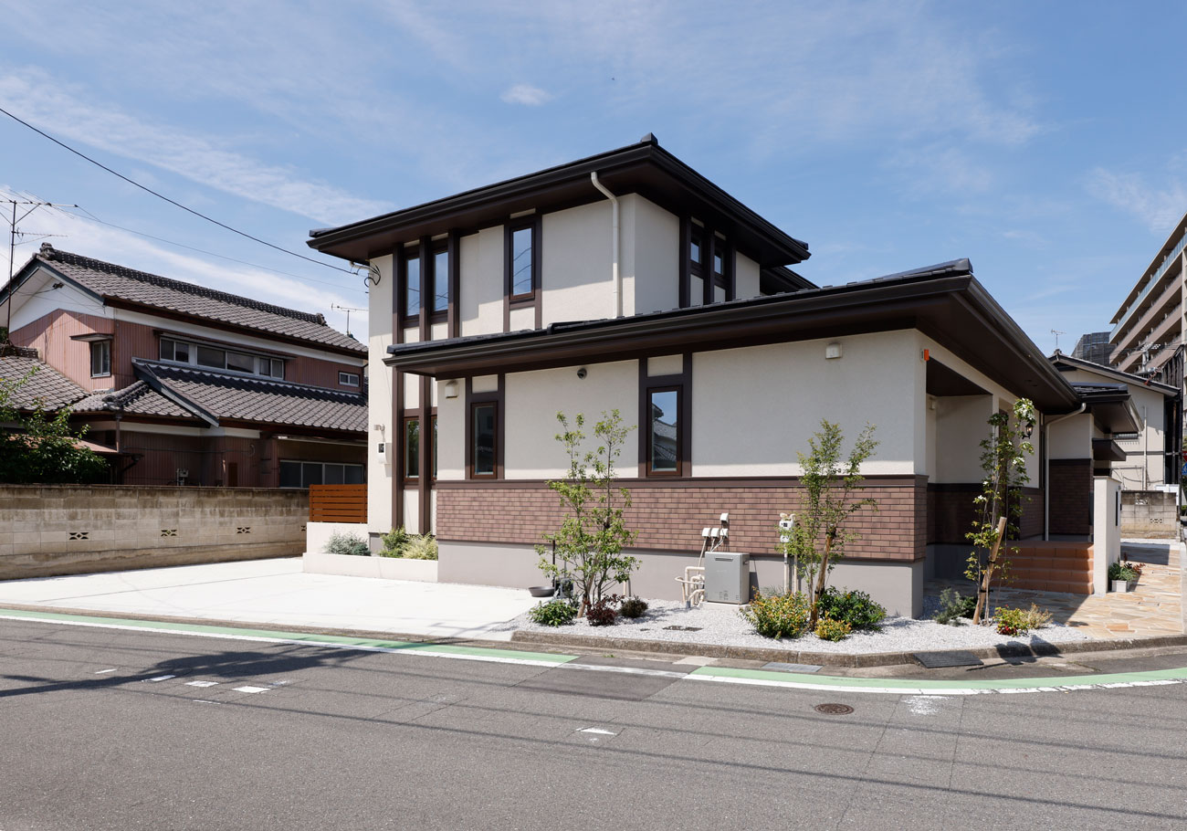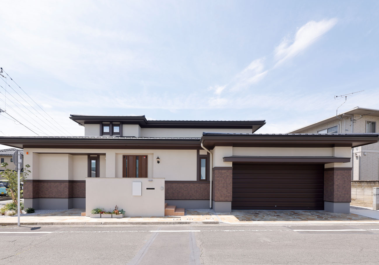 レンガ調のプレーリースタイルな外観