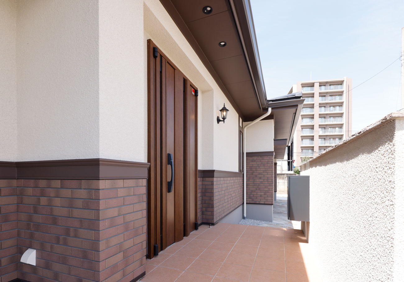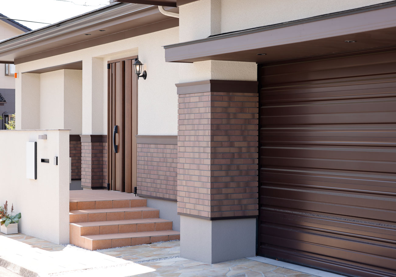 ガレージのあるレンガ調の気品ある住まい