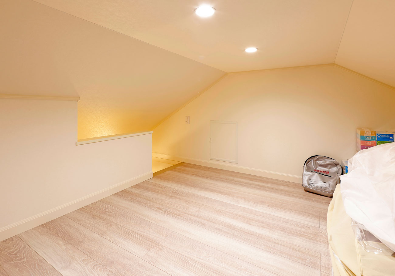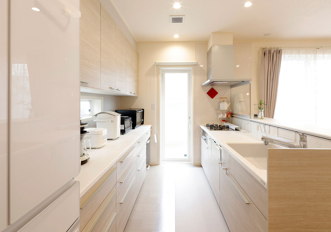家づくりで大事にしたのは、妻の「白くて可愛い家」と私の「天井の高さ」でした。三井ホームさんは標準で2.6メートルの天井があり、他社ではオプション費用がかかる部分がすでに含まれていたのが大きな決め手でした。さらに、収納にもこだわり、キッチンには引き出しの幅や吊り戸棚を私たち好みに調整してもらいました。階段下収納やカップボードの設計も工夫し、たっぷりの収納スペースを確保。まだ使っていない棚もあるほどです。将来家族が増えてから必要になると思ってロフトも追加で設置しました。理想のデザインに加えて、使い勝手も抜群の家が完成し、大満足です。