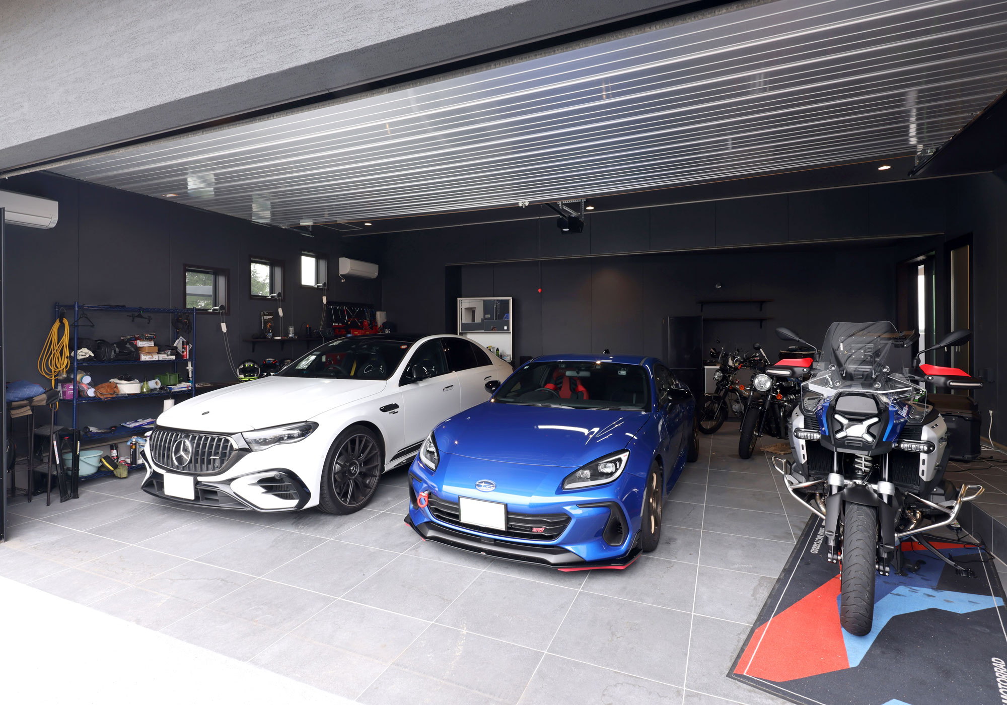 この家はとにかくガレージが中心です。車やバイクが好きなので、最初から“ここは譲れない”と思っていました。サーキット用の車も安心して入れられるように設計してもらったので、本当に理想通りの空間になりました。単なる駐車場ではなく、作業をしたり友人を呼んで集まったりできる“趣味の部屋”みたいな場所なんです。暮らしの中に自分の好きなことがしっかり根付いていて、毎日がちょっとワクワクするようになりました。