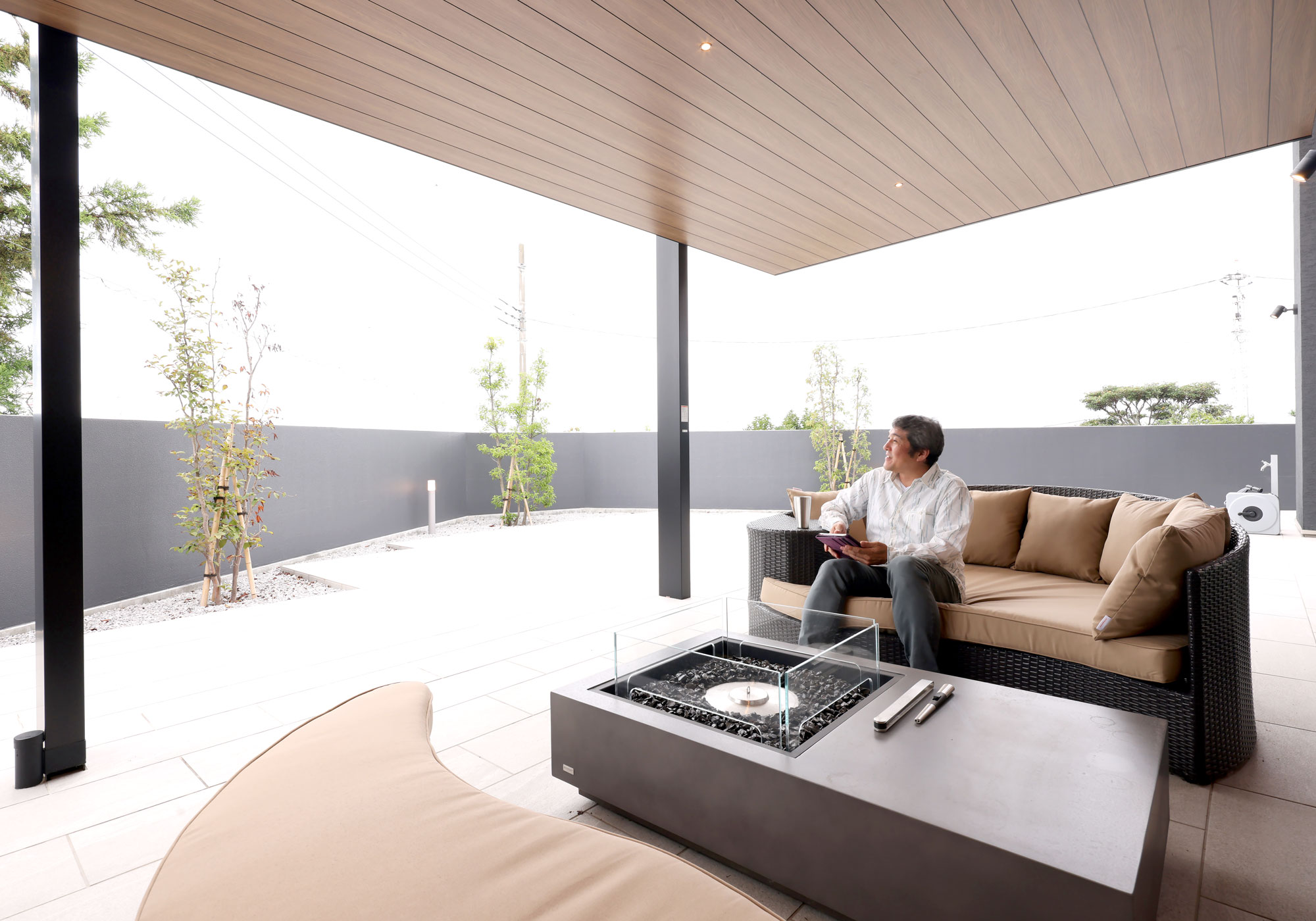 旅行先のホテルに泊まるたびに“こんな雰囲気いいな”と思って写真を撮っていたんです。それを設計のときに見せながら、内装や照明を決めていきました。リビングやテラスは特にホテルっぽさを意識して、落ち着きがありながら非日常を感じられる空間に仕上がったと思います。友人からも“ここ、ホテルみたいだね”とよく言われるので、自分でも満足しています。家にいるだけで特別感があって、リラックスできるのが気に入っています。